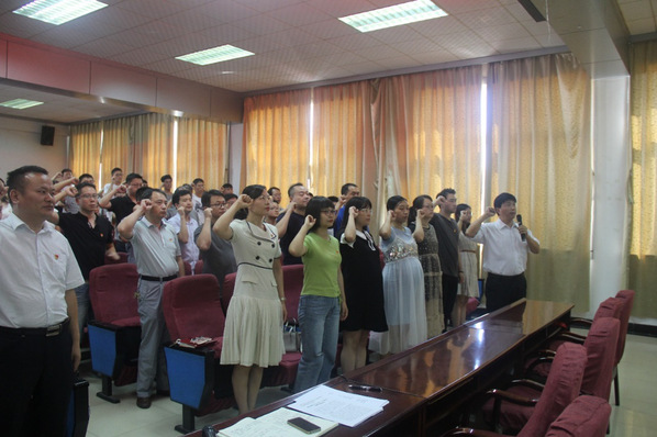 全体党员在党委书记周尔民的带领下重温入党誓词,众人铿锵有力的宣誓展示了全体党员争先的决心。誓词声落后,全体党员观看主题教育录像,深刻理解“不忘初心、牢记使命”的精神内涵,坚守育人理想信念的初心,不忘立德树人的根本使命,用实际行动做好教育工作。