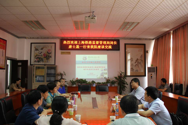 9月24日,在上海铁路监督管理局与我校签署战略合作协议的第二天,唐士晟局长一行“首站”来到我院进行调研交流。院长刘燕德,党委书记周尔民和在家领导、各系部负责人及40岁以下青年博士参加座谈。