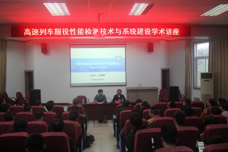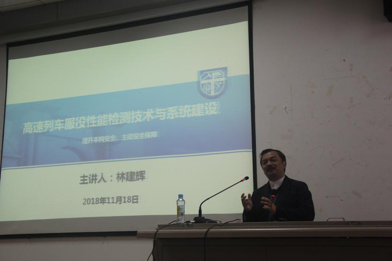 2018年11月18日,西南交通大学牵引动力国家重点实验室教授、青岛研究院院长林建辉教授应邀为我院师生作高速列车服役性能检测技术与系统建设的学术讲座。院长刘燕德致欢迎词,党委书记周尔民,副院长肖乾、各系部老师、全体研究生参加了此次讲座。