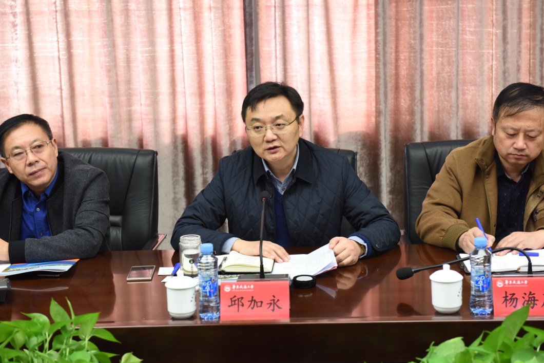 11月22日上午,江苏省高邮市委常委、副市长邱加永率高邮市政企代表团来访我校,开展产学研对接活动并签订人才科技合作协议,副校长黄稚龙主持会议。