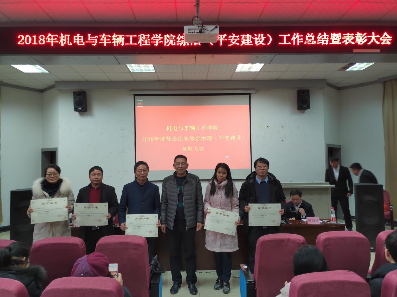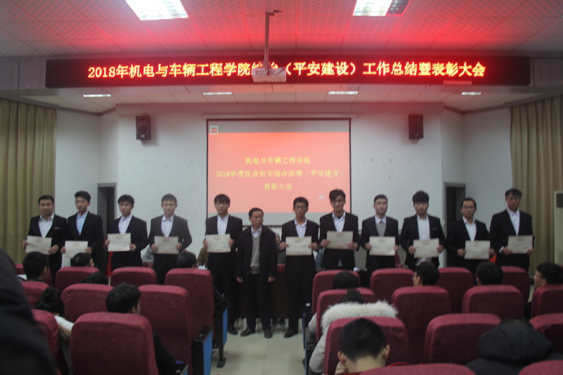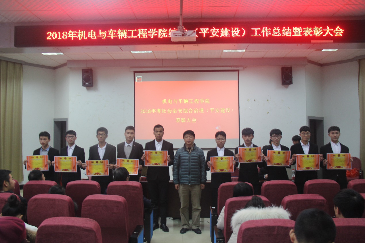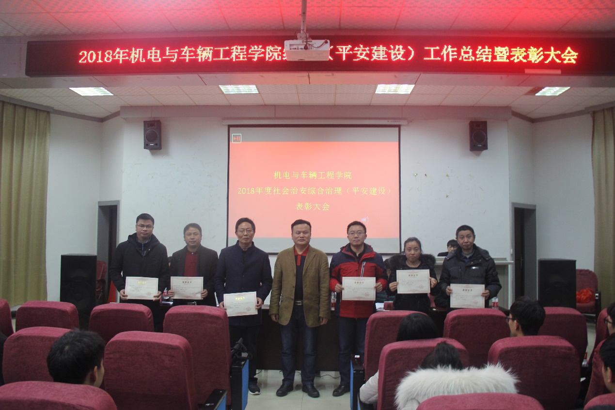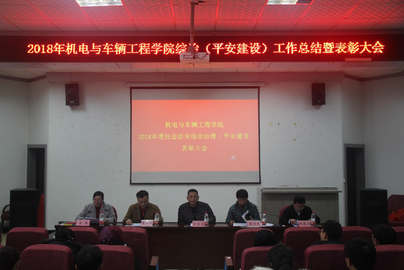 为认真贯彻学校2018年社会治安综合治理(平安建设)相关文件精神,对一批在综治工作中表现突出的集体和个人进行表彰,促进学院综治工作再上新台阶。12月11日,yl23455永利集团2018年综治(平安建设)工作总结暨表彰大会在机电报告厅召开,大会由院党委委员金晶主持。校保卫处处长付自生,院党委书记周尔民,常务副院长周建民,副院长胡国良,院各系部负责人以及学工办全体辅导员,学生会相关成员、各班班委参加会议。