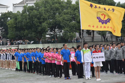 各学院代表队经过主席台时在主席台前进行三分钟表演展示。一声嘹亮而又雄厚的口号,划破天际。“机电巨龙,气势如虹,劈波斩浪,力压群雄”我们的目光不由地被它吸引过去,他们那激动人心的配乐,激情热血的舞蹈,让每个人的心中都燃起了一团火,那一团名为青春的火。