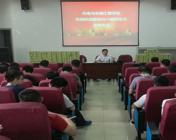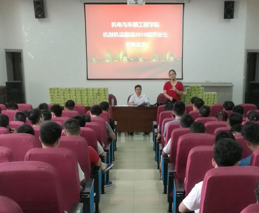 6月9日,机电学院2018届毕业生主题班会在机电报告厅召开,毕业班辅导员欧阳万如主持班会。