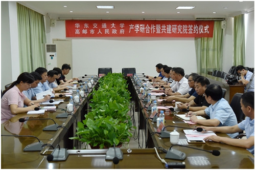 7月20日,我校与高邮市签订产学研合作暨共建研究院协议,为双方发展搭建一个相互交流学习合作的平台。我校校长罗玉峰、纪委书记朱卫国,高邮市副市长张军出席签约仪式。
