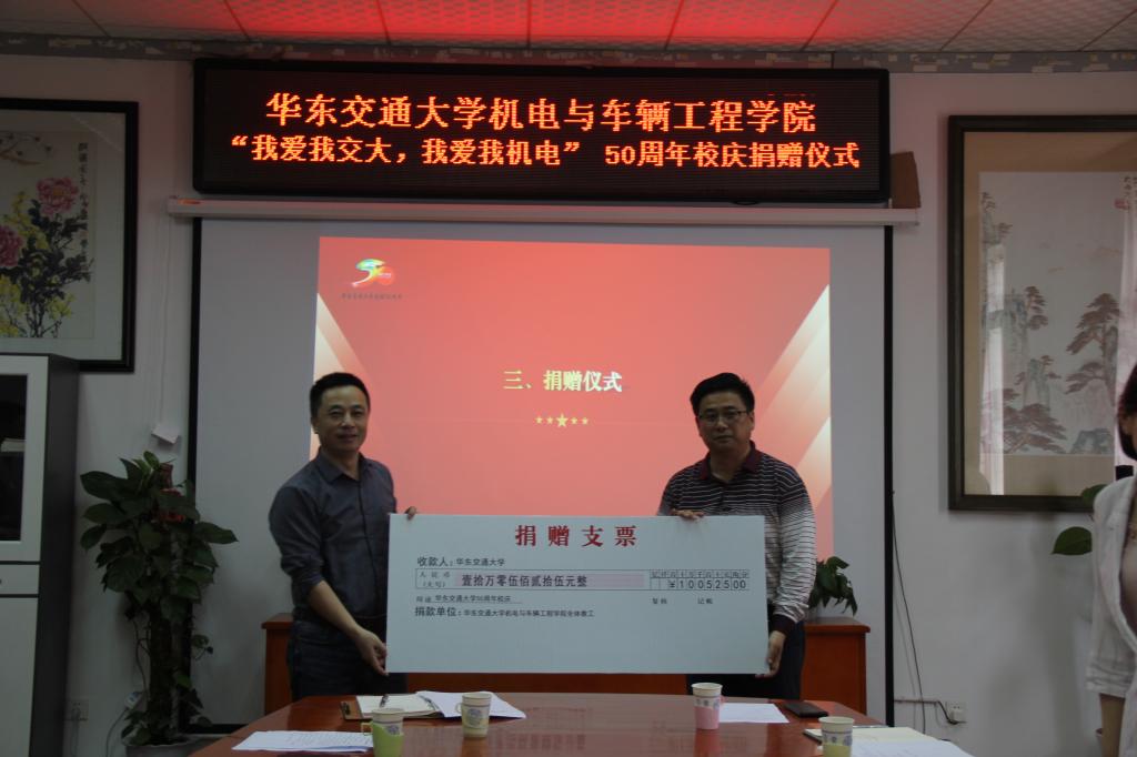 5月25日下午,“我爱我交大、我爱我机电”50周年校庆捐赠仪式在机电学院13栋会议室举行。对外联络处处长、校友办主任罗侃出席捐赠仪式并致辞,学院党委书记陈科主持。