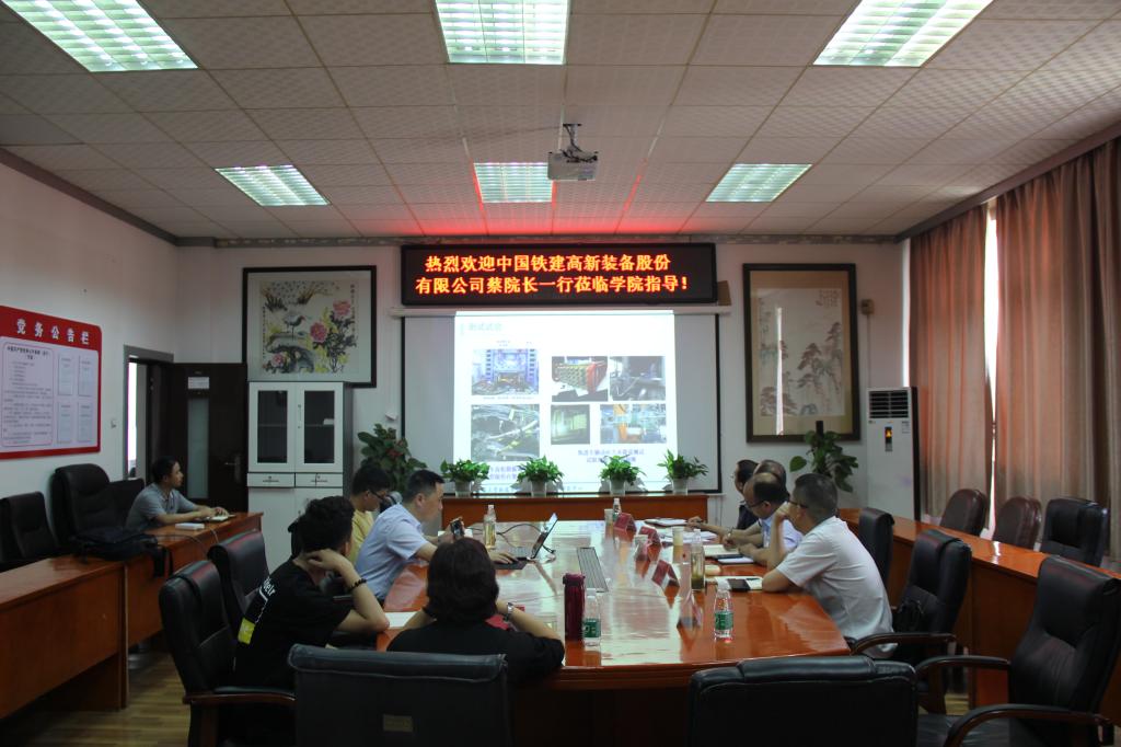 6月8日下午,中国铁建高新装备股份有限公司蔡院长一行6人赴我院考察交流,院长肖乾、院长助理张龙及部分教师出席本次会议。