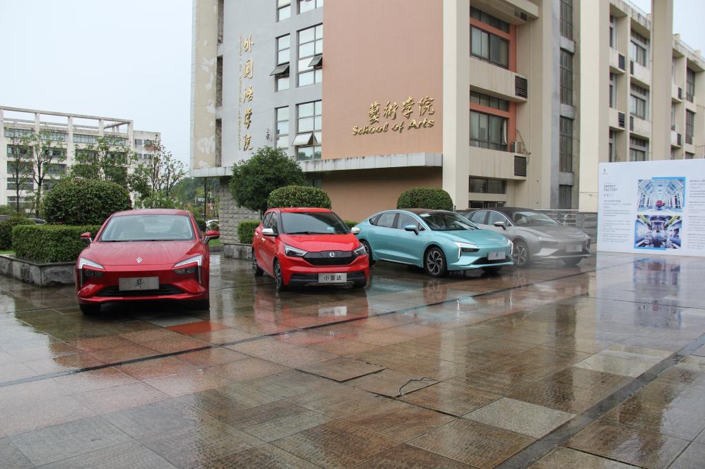 江西江铃集团提供9台雷诺江铃新能源汽车为参会嘉宾以及广大师生试乘试驾