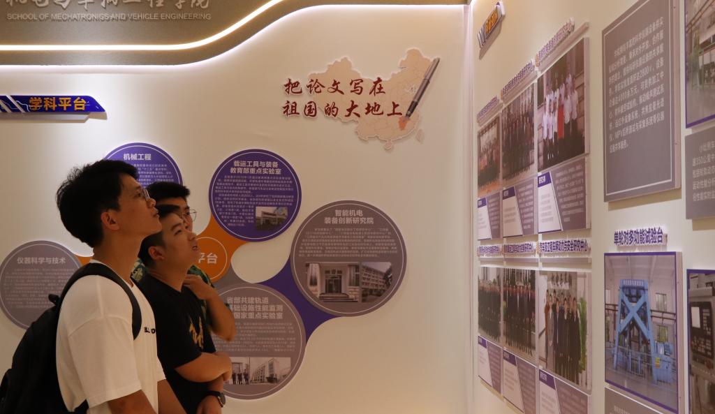随后,校友们走进校史馆重温历史,共忆悠悠情深。在讲解员的指引下,校友们参观了从1971年建校以来学校的发展与变迁,重温了我校几十年来不断发展壮大的风雨历程,深刻感受到“交通特色,轨道核心”的文化积淀,认识到“日新其德,止于至善”的校训内涵。大家被华交拓荒人艰苦育才的精神所感动,也为我校专家学者和知名校友取得的成功感到骄傲,更为我校历届毕业生们为国家铁路事业和社会经济发展所作出的贡献而感到自豪。校友们纷纷表示要汲取校史精神内涵,秉承“团结、求实、创新、奋进”的校风,继续做交大精神的实践者、传播者和发扬者。