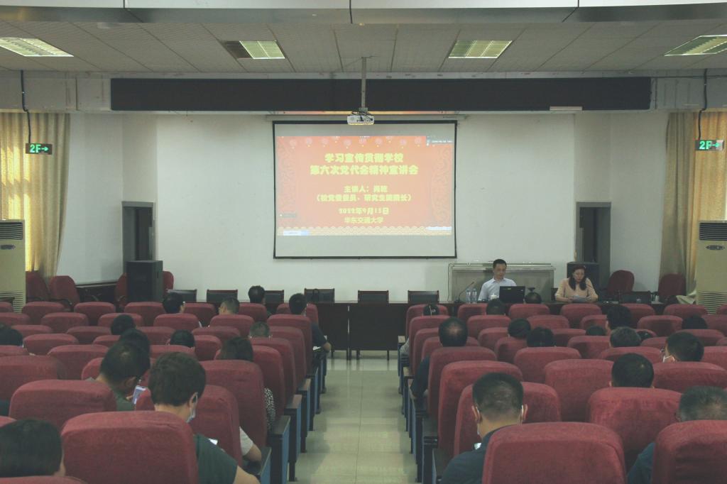 为学习好、宣传好、贯彻好学校第六次党代会精神,9月15日下午,我院召开学习宣传贯彻学校第六次党代会精神宣讲会。校党委委员、研究生院院长肖乾做专题宣讲,会议由院党委委员金晶主持。