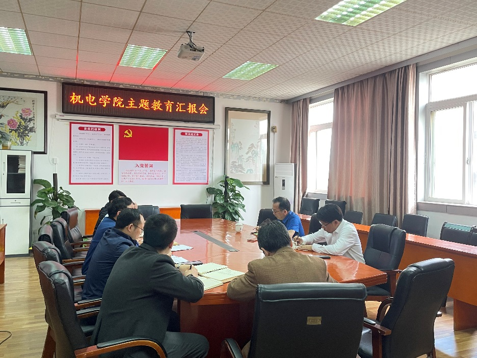 柳和生认真听取了机电学院党委负责人关于学院目前主题教育工作进展、存在问题及特色亮点的情况汇报,详细了解了领导班子成员调查研究、推动发展、检视整改等方面的工作进度。