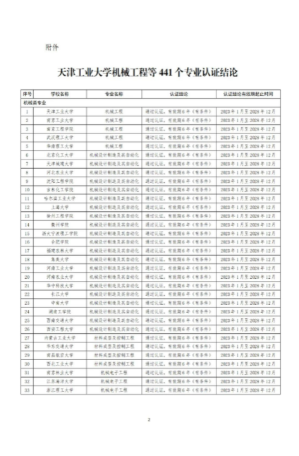 2023年6月27日,中国工程教育专业认证协会发布了《关于公布天津工业大学机械工程等441个专业认证结论的通知》。我院车辆工程专业通过工程教育认证,认证有效期6年(2023年1月至2028年12月)。