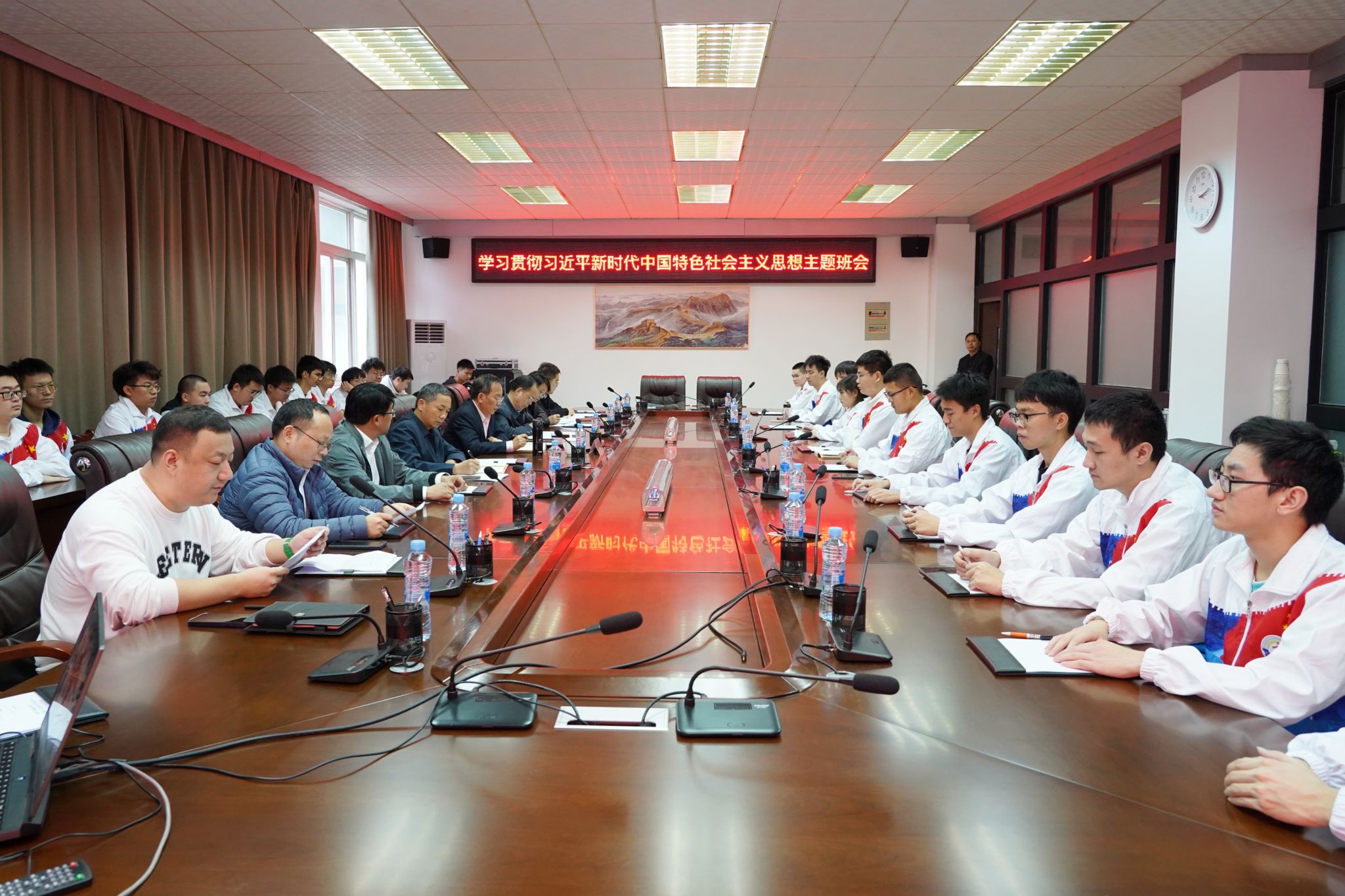 机电学院班子成员、辅导员、2021级机械设计制造及其自动化专业3班全体学生参加主题班会。(马莉娅 摄)