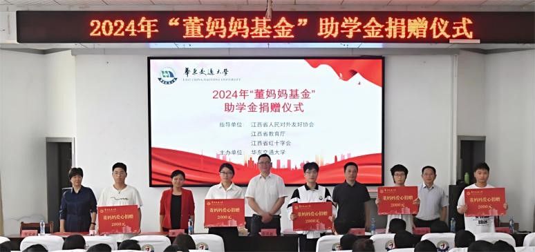 6月14日,yl23455永利集团“董妈妈基金”助学金捐赠仪式在yl23455永利集团学术报告厅举行。董淑贞女士的儿子、上海彪亨建筑工程有限公司总经理庞玮颖,江西省人民对外友好协会专职副会长涂安波,江西省红十字会专职副会长戴莹,江西省教育厅国际合作与交流处一级调研员彭钢,我校党委委员、副校长肖乾出席捐赠仪式。相关职能部门、学院主要负责人、全体辅导员和受资助学生参与此次活动。