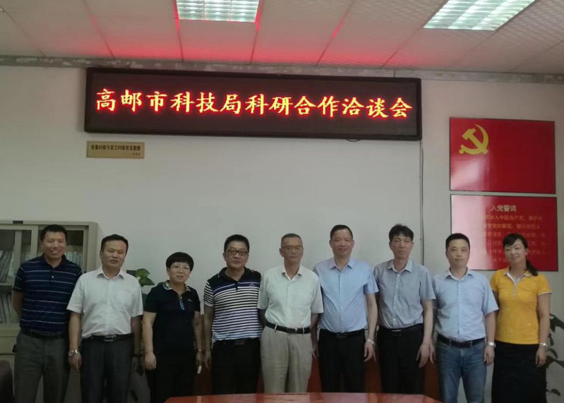 2018年5月16日,江苏省高邮市科技局副局长黄翔、高邮城南新区管委会副主任路荣山、高邮城南新区科技人才办副主任杨翔凤、扬州市金诺尔不锈钢有限公司董事长金传辉等人赴我校机电学院洽谈合作事宜,我校纪委书记朱卫国,我院院长刘燕德,副院长周建民、肖乾,导师郝勇参加本次洽谈会。