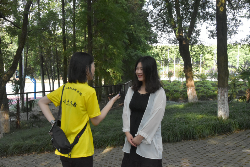 院长刘燕德,院党委书记周尔民,院党委委员金晶前来机电学院报到处进行工作指导时,采访小组对院党委委员金晶进行了简要采访。金晶提出:“我校校训‘日新其德,止于至善’意味着做每件事都要有追求,不能停下学习的脚步。学到老,活到老,要在学习生活中不断的完善自己。老师与家长要多沟通多交流,谨遵校训,增强体格。”