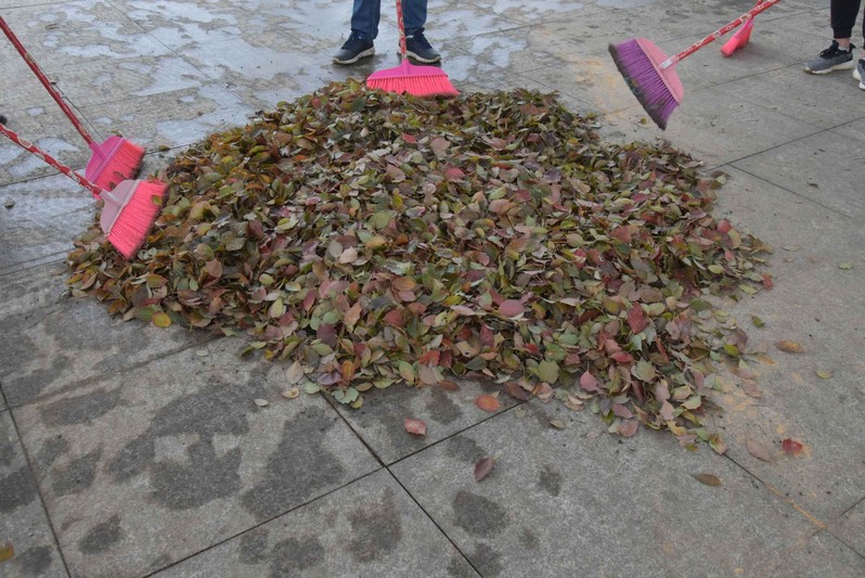 两部门成员到达孔目湖后,拿起扫把认真清扫校园中的落叶。这份志愿活动对他们来说不是义务,而是一份维护校园环境的责任。一下午的时间里,他们用实际行动换来了一个干净整洁的校园。