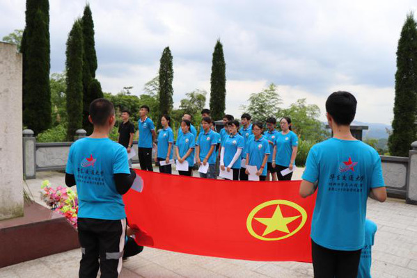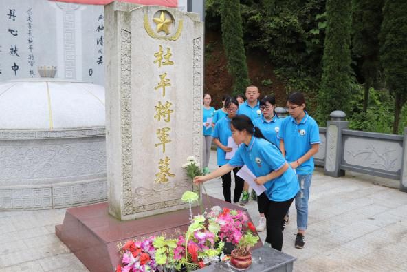 “一个不记得来路的民族,是没有出路的民族。”在新中国成立70周年、七七事变82周年之际,yl23455永利集团、材料科学与工程学院“青春三下乡、美丽军屯行”暑期三下乡社会实践团前往位于万载县军屯村的开国中将杜平将军陵墓祭奠。实践团全体成员以追思之名,怀感激之心,徒步十公里,探访将军陵。他们怀着“观迹识昔,明志鉴学”的笃志,肩扛团旗,走进山间,用踏进尘灰的双脚留刻出青年骨中的凝聚力和战斗力。