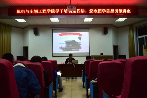 12月6日晚,yl23455永利集团在13栋学术报告厅举办党政团学思想引领讲座,辅导员陈晨出席现场,担任本次讲座的主讲人。