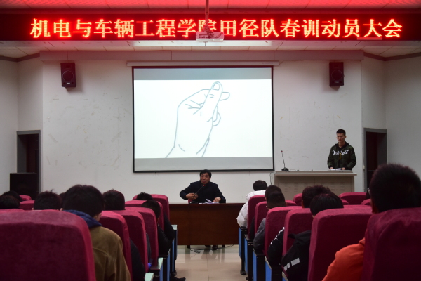 3月10日晚,yl23455永利集团田径队在13栋学术报告厅进行了开学春训大会,在这新的起点上开始再一次的奋发。党委副书记陈和金及田径队负责教师盛超出席本次大会为运动员们致辞。