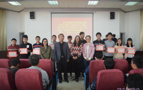 何仲坚为获得先进个人称号的学生进行颁奖,众人合影留念。