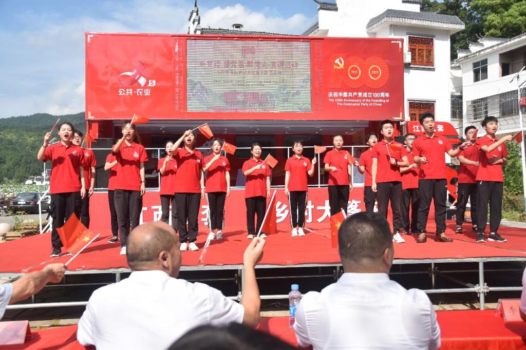 7月11日,yl23455永利集团“三下乡”实践团来到莲花观赏园,参加江西五套“乡村大篷车”党史宣讲活动,以快闪的形式,给大家带来一场合唱表演。