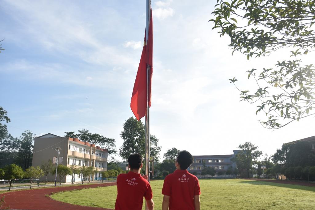 7月14日上午七时,yl23455永利集团“三下乡”实践团成员们迎着朝阳抵达驿前中学升旗台。“起来!不愿做奴隶的人们,把我们的血肉……”伴随着雄壮激昂的《义勇军进行曲》,实践团成员注视着徐徐升起的国旗,齐声唱响国歌。
