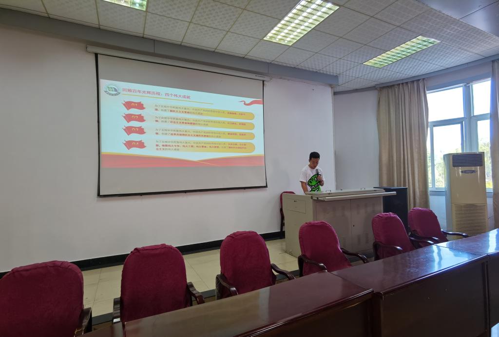 会上,管晓凤老师以学“七一”精神、担复兴重任为主题,向大家解读了总书记“七一”重要讲话精神。随后由钱立群同学带领学习,详细地解读了这篇光辉的马克思主义纲领性文献。