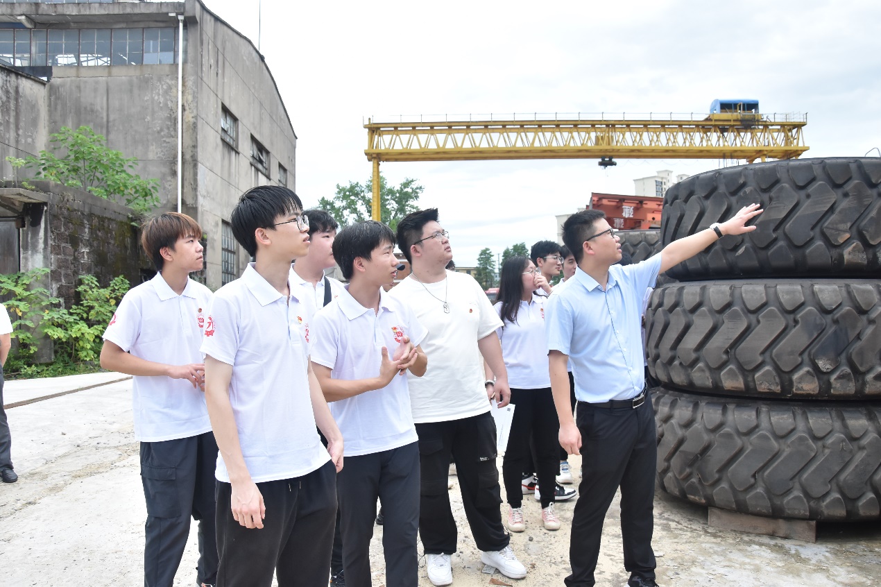 车间外,诸多大型设备和机械零件整齐摆放,现场互动氛围热烈。