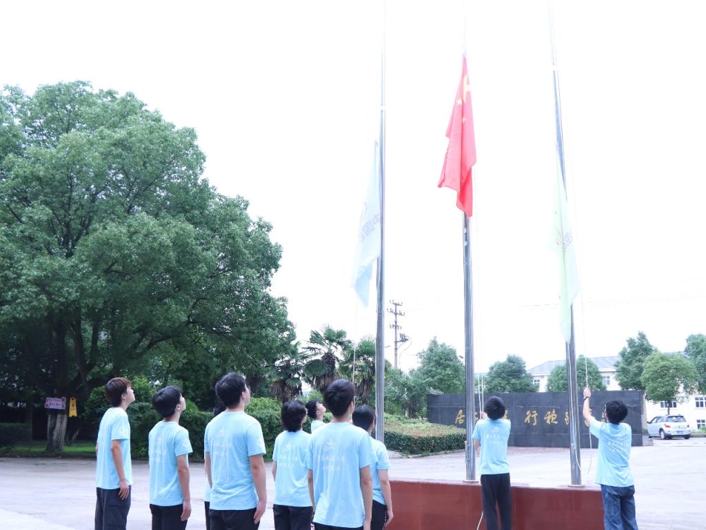 微风和煦的清晨,旭日东升,实践团成员们举行升旗仪式。“起来!不愿做奴隶的人们!把我们的血肉……”全体成员神态庄严,目不转睛地注视着缓缓升起的国旗,齐声唱响国歌。随后,实践团成员们精神抖擞、热情高涨的进行晨跑活动,为工厂增添了新的活力。