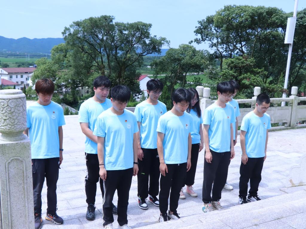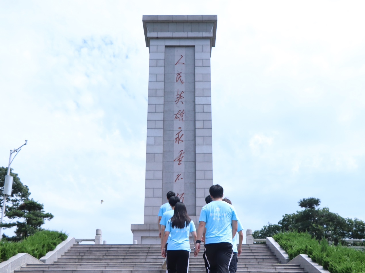 6月27日,晴空万里无云,大地骄阳似火。怀着无比崇敬的心情,实践团成员整齐列队,拾级而上。在巍然耸立的革命烈士纪念碑前,全体成员鞠躬哀悼,以无声的方式缅怀先烈,寄托哀思。