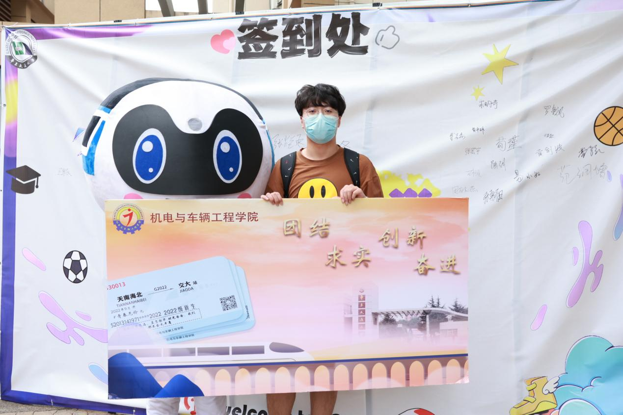 简单完成报到手续后,同学们暂缓前行的步伐,拿起马克笔在签名墙上留下自己的名字,手执从天南海北通往交大的车票,在此留下与母校的第一张合影。