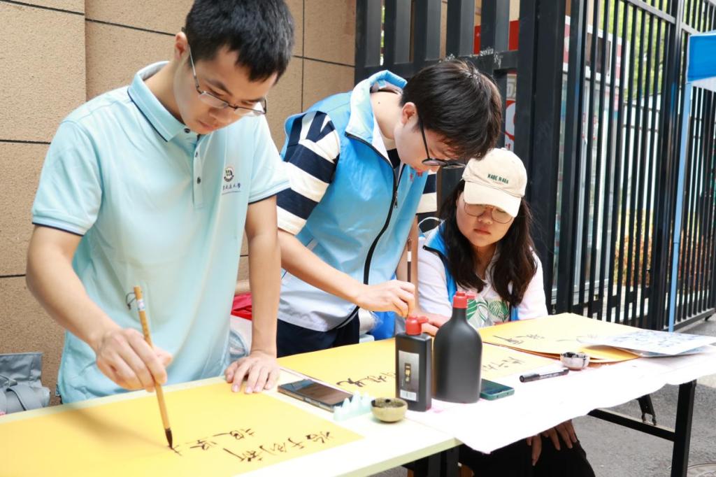 寝室楼下,志愿者们贴心的为新同学书写对联,并赠予其作为留念。
