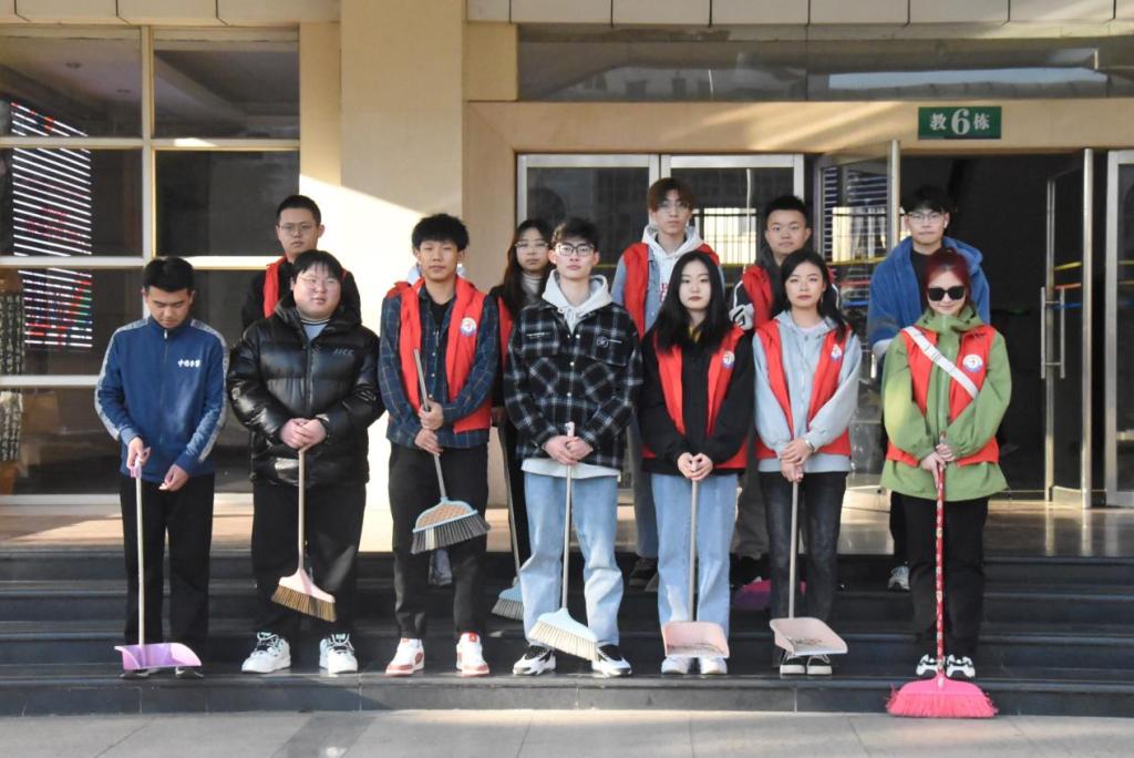 天气晴朗,尽管气温较低,但难掩志愿者们满腔热情。于教6栋准时集合后,他们手持扫帚分工明确,随即开始清扫周边环境中的垃圾,细心清理着每一个角落。事虽小,对于校园环境却有重大意义,明亮干净的校园就是由一桩桩小事组成,志愿者们通过实际行动为干净整洁的校园环境尽着自己的一份绵薄之力。