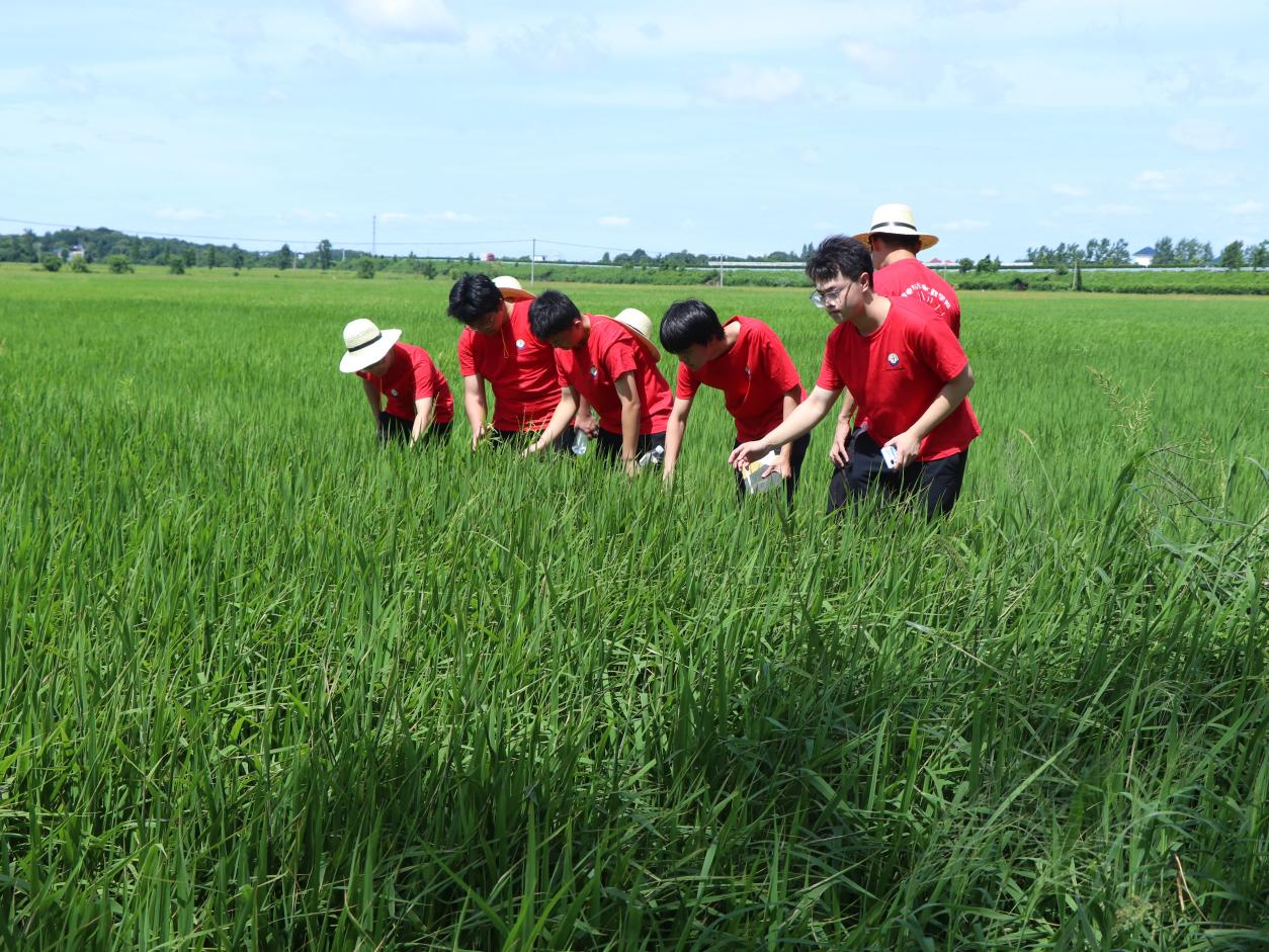 为进一步深化对粮食安全的认识,实践队开始对当地水稻进行实地调研。实践队与当地村民围绕着水稻种植模式、管理措施、种植成本和经济效益方面进行了深入交谈。交谈后,实践队来到田间地头,了解水稻生长情况、受虫害情况以及早稻和晚稻的区别。实践队队长张志华向实践队队员科普了水稻的生长周期、种植步骤等知识。大家通过走访了解到,全村水稻种植机械化程度高,能够利用无人机等机械设备帮助种植水稻,克服了壮劳力外出务工带来的问题。同时,通过近距离对水稻种植过程的了解,实践队员对国家粮食安全政策有了更加直观的认识。