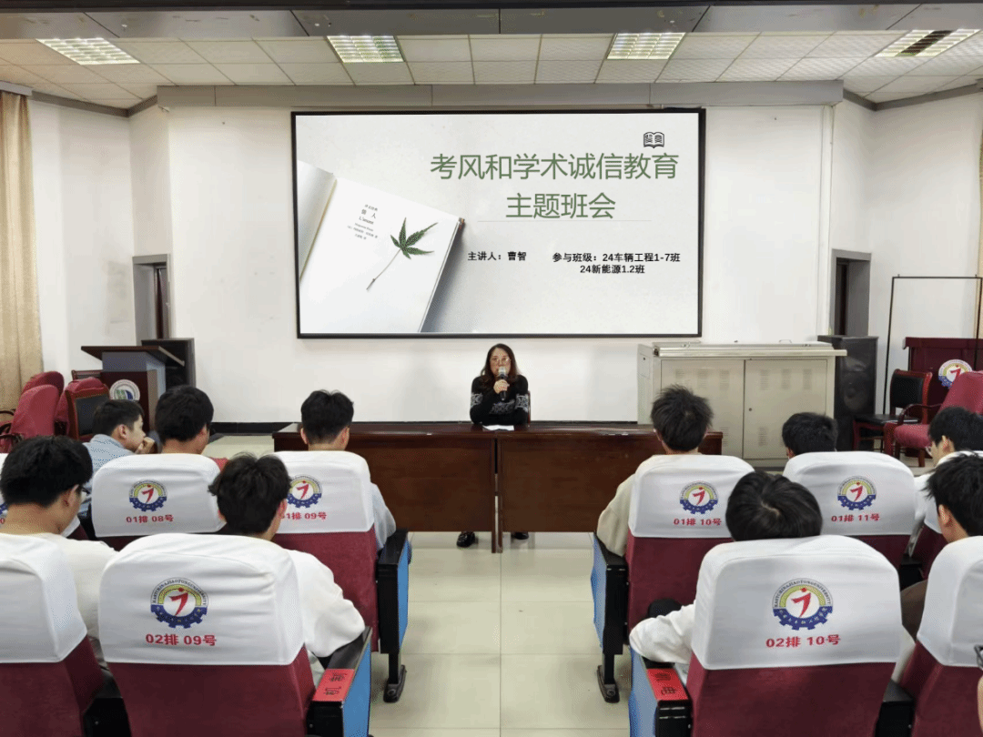 随后,辅导员强调了学术不端行为的界定和危害,如抄袭、作弊等对个人学术生涯的负面影响,引导学生遵守考试规则和学术规范,维护学术尊严。