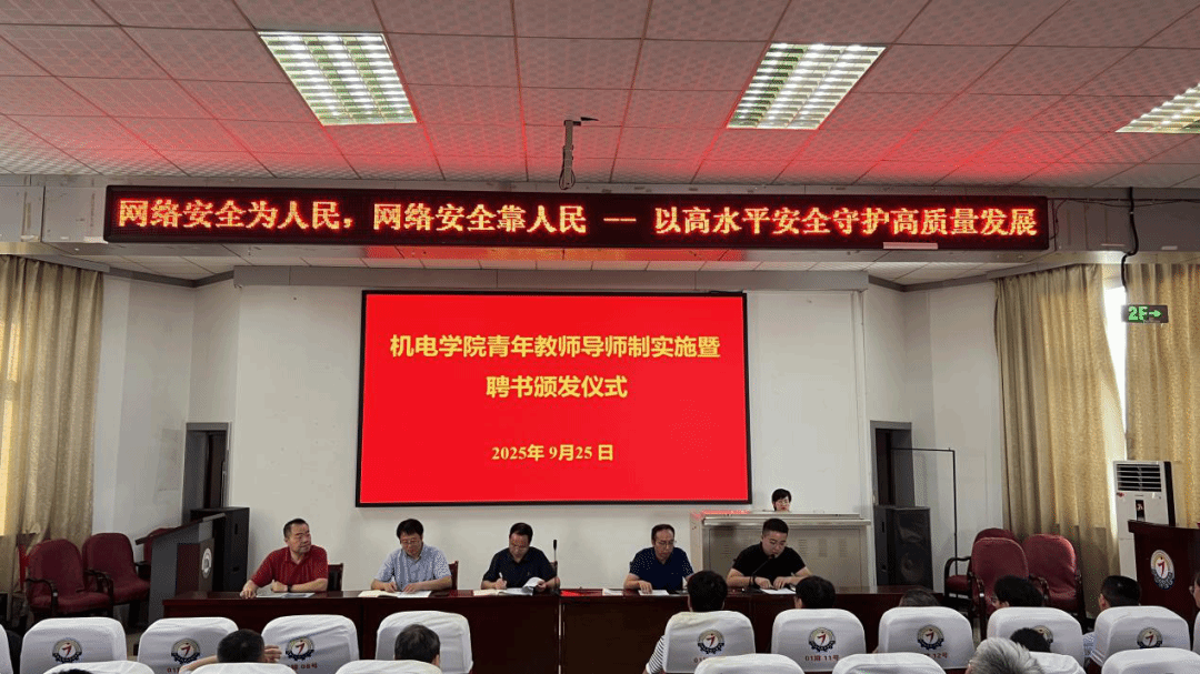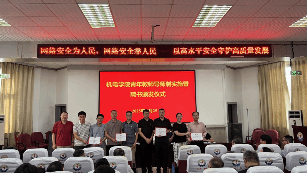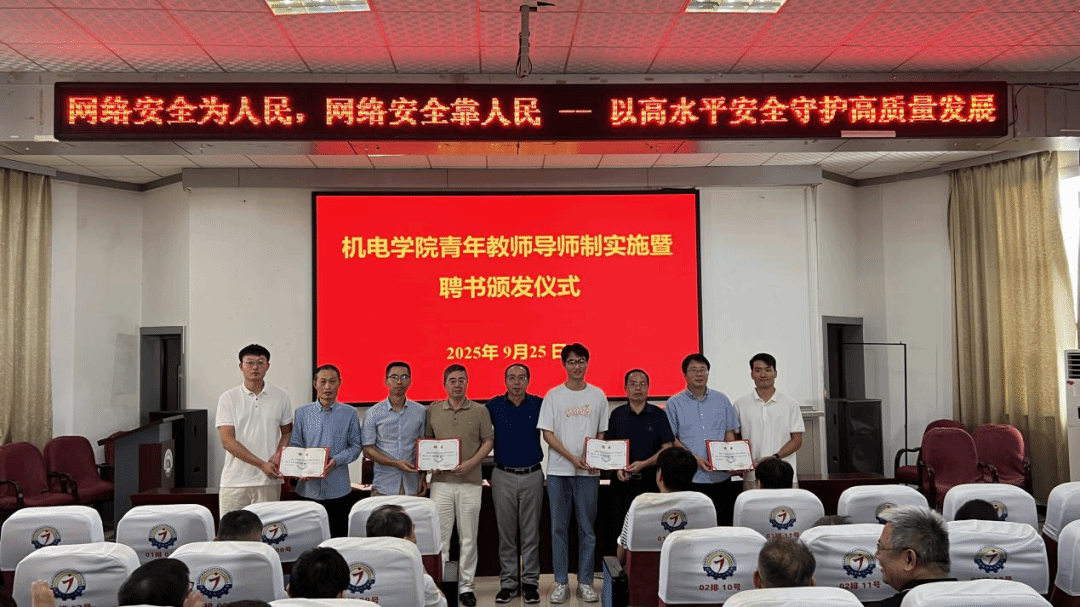 此次仪式的举办标志着机电学院青年教师培养工作迈入规范化、体系化的新阶段,为学院人才队伍建设提供了坚实保障。学院全体教职工参加颁发仪式。