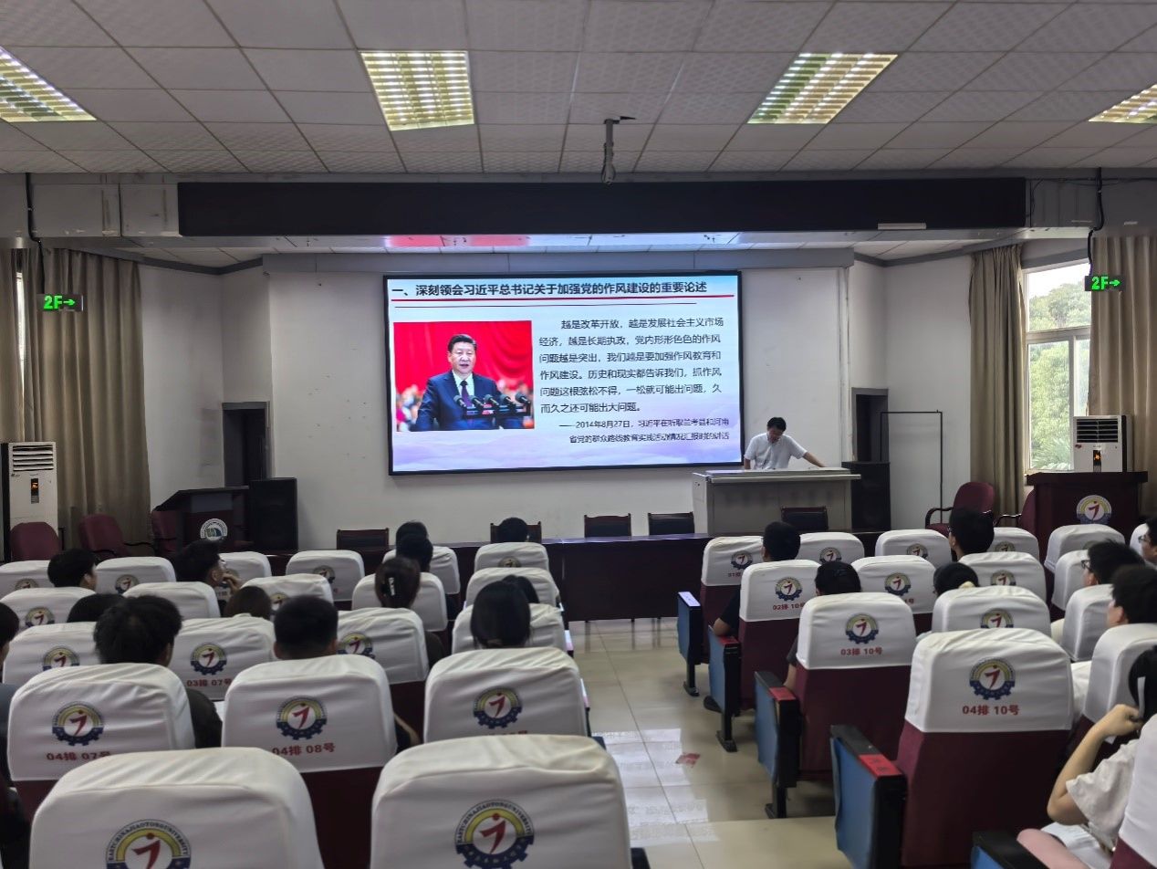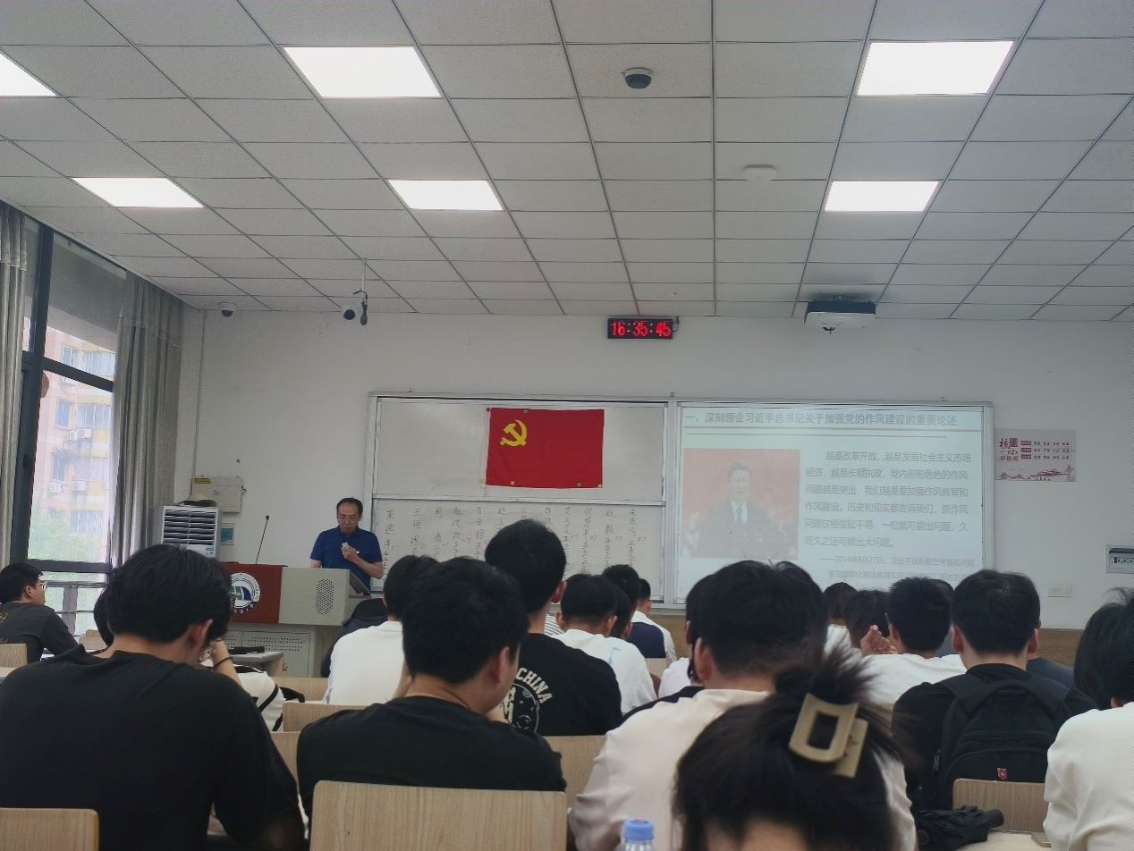 为庆祝中国共产党成立104周年,深入贯彻中央八项规定精神学习教育,进一步提升学院广大党员干部干事创业激情,凝聚推动学院高质量发展的强大合力,近日,机电学院党委班子成员深入党支部、班级,讲授主题为“以严实作风护航高质量发展——深入学习贯彻习近平总书记关于加强党的作风建设重要论述”的党课。