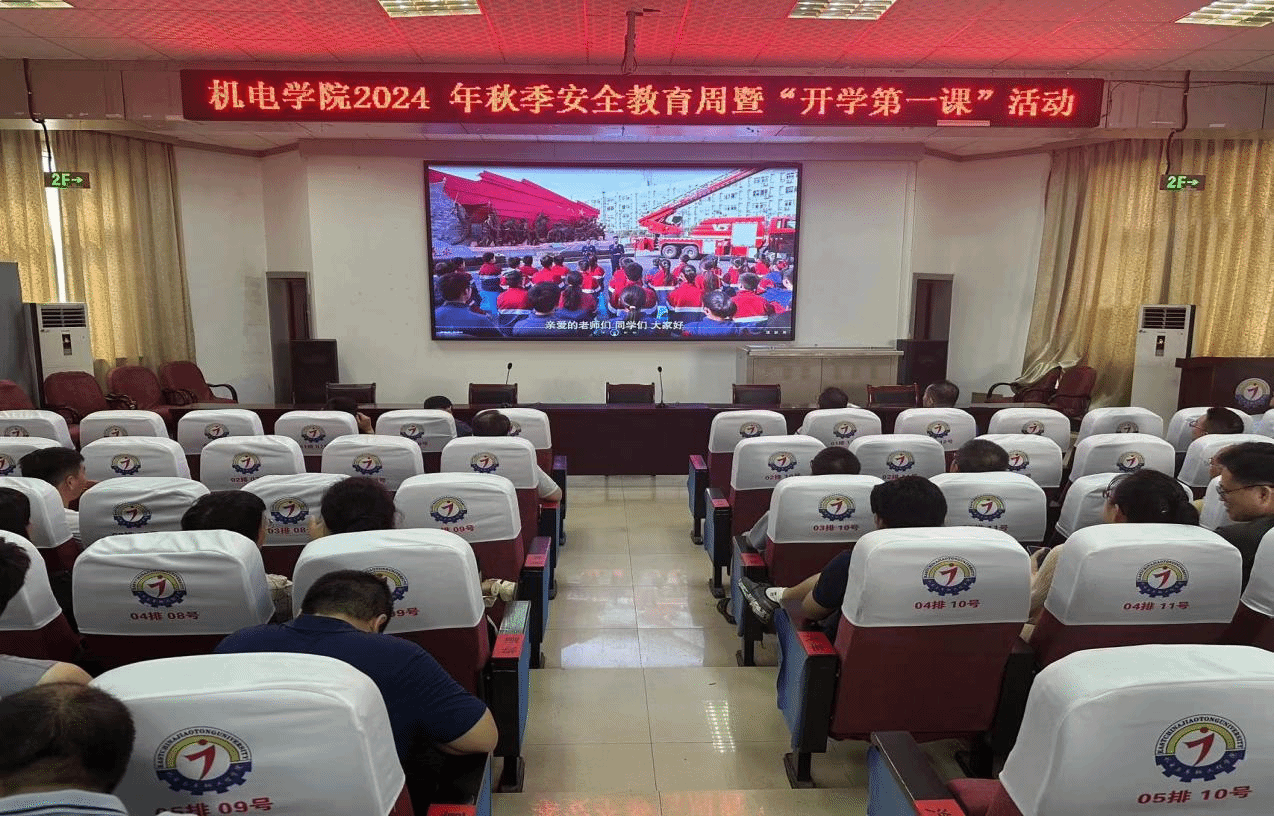 8月31日,yl23455永利集团于学术报告厅召开了2024年秋季“开学第一课”暨安全教育主题大会,机电学院全体教职工参加此次会议。会议由学院党委副书记陈铭主持,党委书记匡唐清对安全教育活动进行了部署,要求全体辅导员和教师按照学校关于开展2024年秋季安全教育周暨“开学第一课”活动的通知,对学生进行全面的安全教育。会议中播放了安全教育宣传片,提前做好了授课准备,并对相关知识进行了延伸,提升了全院教师的安全教育理念。