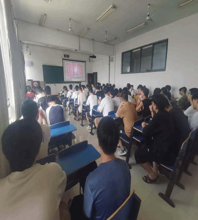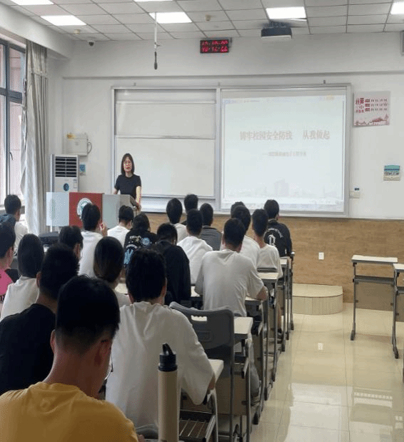 (图为辅导员盛超老师给2024级机械专业全体新生开展安全主题教育)