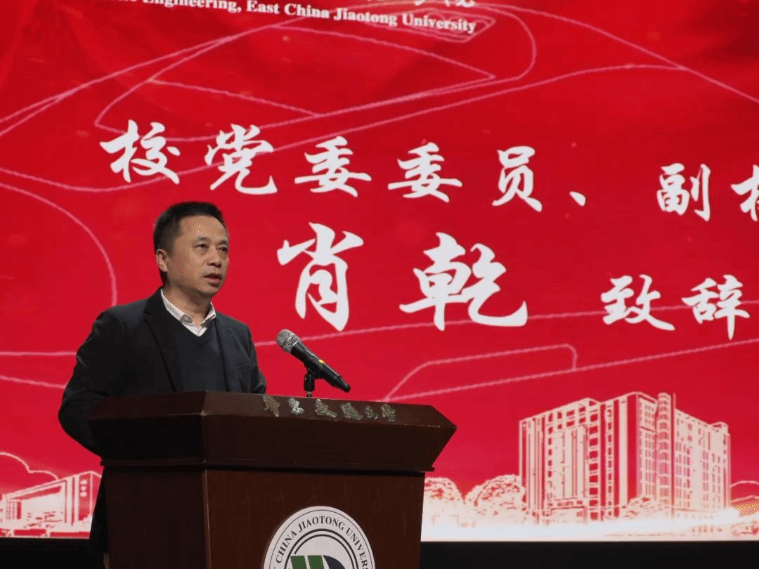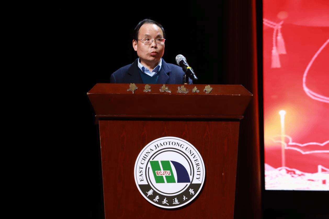 机电学院院长胡国良代表机电学院全体师生向各位领导、校友的到来致以最诚挚的欢迎和最衷心的感谢。胡国良以“学校发展大局和学院重点工作两头抓,真抓实干,大抓落实”为切入点,从党建和思政教育、教学和实验室建设工作、人才工作、学团工作等方面对学院过去一年取得的成绩进行总结。胡国良向全体机电学子提出了三点期望:第一,要坚持脚踏实地,争做美好未来的奋斗者;第二,要坚持创新驱动,争做改革发展的实践者;第三,要坚持五育并举,争做科技创新的追梦人。胡国良对未来做出展望:希望机电学子能继续坚定不移听党话、跟党走,怀抱梦想又脚踏实地,敢想敢为又善作善成,立志做新时代有理想、敢担当、能吃苦、肯奋斗的华交铁人铁军。