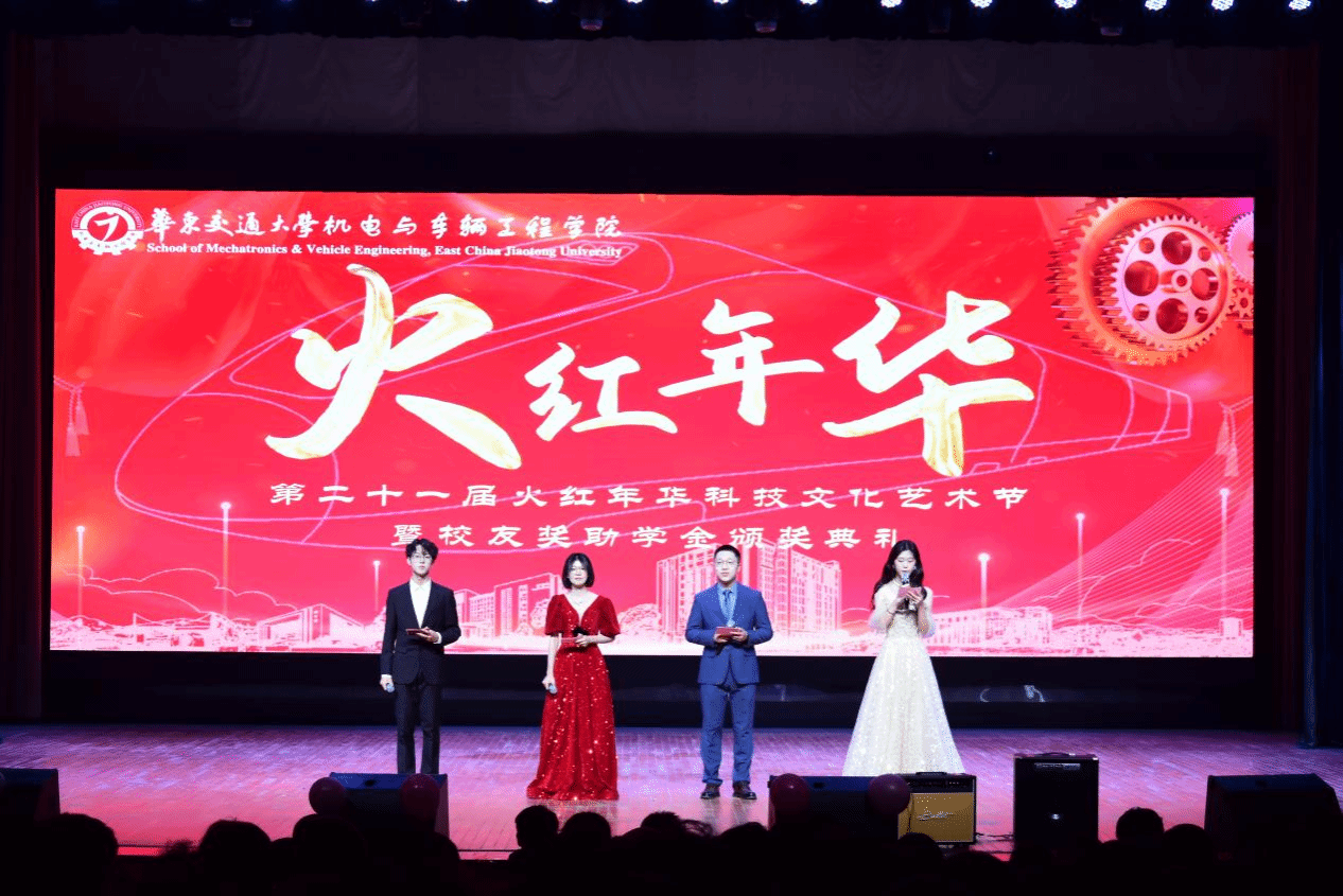 2024年12月26日,我院于南区礼堂举行第二十一届火红年华科技文化艺术节暨校友奖助学金颁奖典礼。校党委委员、副校长肖乾,湖南中车株机公益基金会理事长吴镛,江西远航建设集团有限公司执行总经理党剑,“小铁校友奖学金”设立者、1998级机制专业校友徐清木的班主任黄薇,装备制造卓越工程师学院直属党支部书记张龙,学生工作处副处长肖凤莲,校团委副书记高旭,对外联络处副处长、校友工作办公室副主任吴亮秦,创新创业学院院长师星,机电学院院长胡国良、党委书记匡唐清、党委副书记陈铭、副院长占金青、副院长张海、党委委员曾建邦以及学院相关教师代表和全体辅导员老师参加了本次典礼。