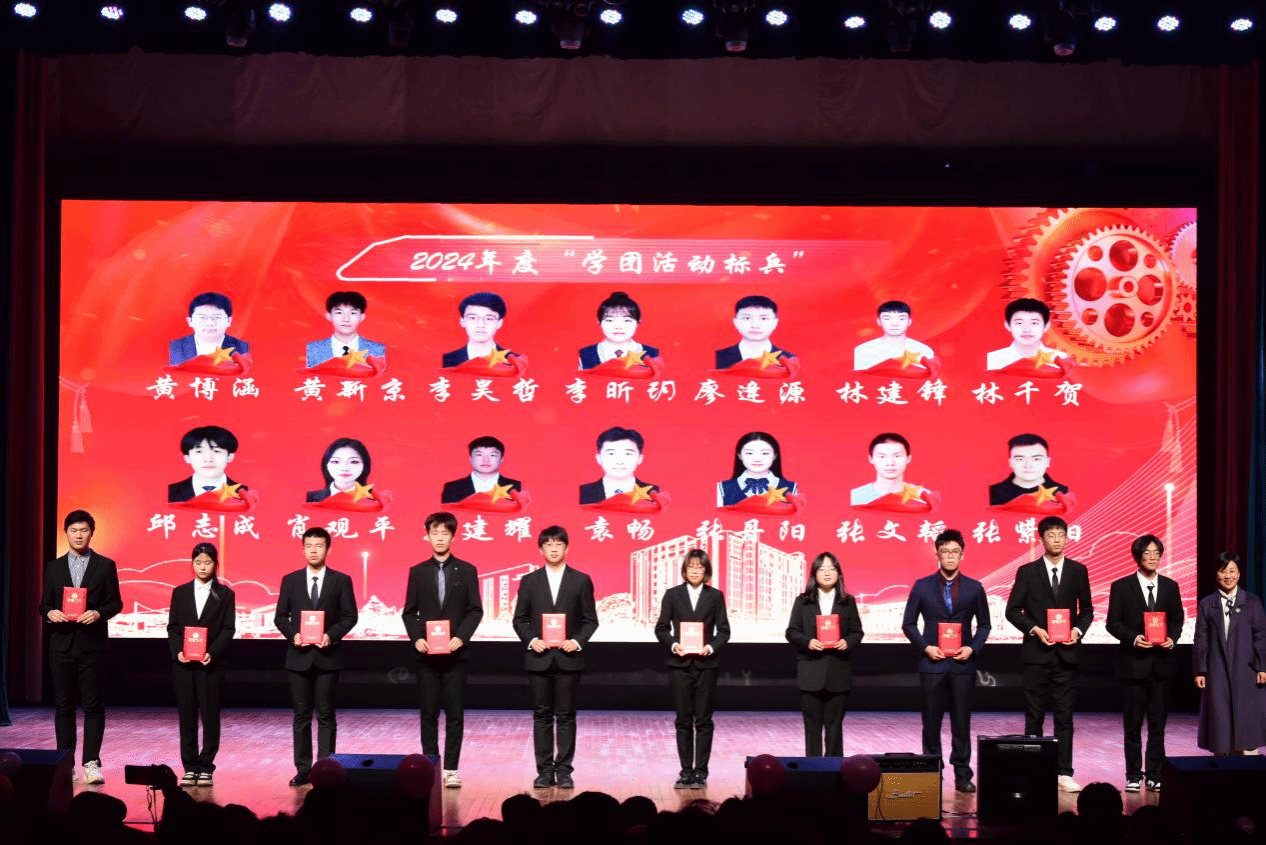 青春昂扬展风采。晚会对2024年度各类先进学生进行表彰,其中包括“学团活动标兵”、双创活动标兵、“学习标兵”、“先进工作者”、“文体活动标兵”、“校运动会先进个人”、“优秀新媒体工作者”诸多荣誉。青年才俊,满腔热血,一心向前。他们是青年的标杆,是时代的骄傲。他们在晨曦中挥洒激情,在夜幕下坚持追梦;他们付出的努力,化作了成功的基石;他们经历的挫折,铸就了英雄的徽章。他们年复一年的拼搏,让“铁”的意志在竞技场上闪耀!