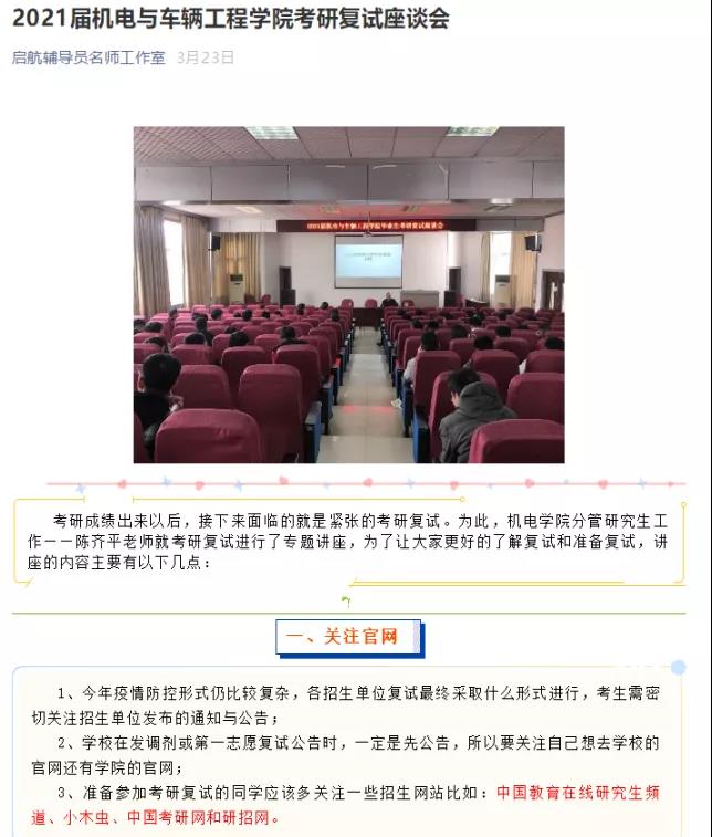 四、线上推广考研复试信息。不仅开展讲座,也发布了相关推送,让考研学生多渠道了解复试信息。