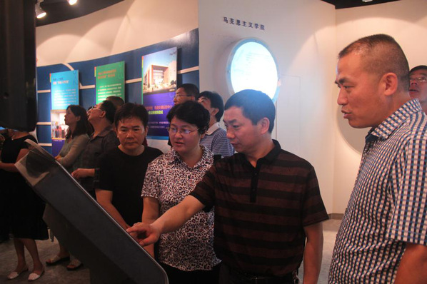 陈和金陪同84级校友参观了校史馆,校史馆通过大量图片、实物和资料,全景式展现了我校将近50多年的发展历史,突显了学校在不同历史时期做出的突出贡献。校友表示,几十年来学校改革发展取得了巨大成就,期许交大可以越走越好。校友们重温交大求学时光,交流学习工作心得,共同展望美好未来。参观完校史馆以后,他们于机电学院参观,之后又于孔目湖旁游走,看白驹过隙,沧海变幻,感叹时光飞逝,连三十年都一倏而过。