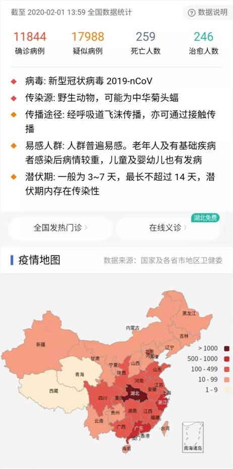 当前,新型冠状病毒肺炎疫情牵动着全国人民的心。武汉作为疫情源头,全市人民正在经受极大的考验。为防控疫情、切断病毒传播途径,打赢这场防疫战,全国各地医疗团队纷纷抵达武汉增援,在这场战役中,全国医务人员作出了巨大的努力与牺牲,坚守在抗击新型冠状病毒肺炎的第一线。截止到 2020年2月1日14时,全国已确诊感染新型冠状病毒患者11844例。