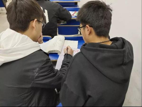 经学生党支部党员万常胜的询问,了解到大一的学生们对高数和制图存在些许疑难困惑,提前做好了预备工作,并来到晚自习教室为同学们答疑。在高数上,带班党员们拿着同学们的同步练习并结合自己的笔记和心得体会,为同学们耐心解惑、讲解难点,明确知识体系构架;在制图上,带班党员们画着一个个形象生动的草图帮助同学们进行空间想象,同时讲解作业题中组合体较难的相贯线问题,并一再强调着画图的规范性、传授考试得分技巧。同学们在讲解中获得了对期末考试的些许信心和要考好的愿望。