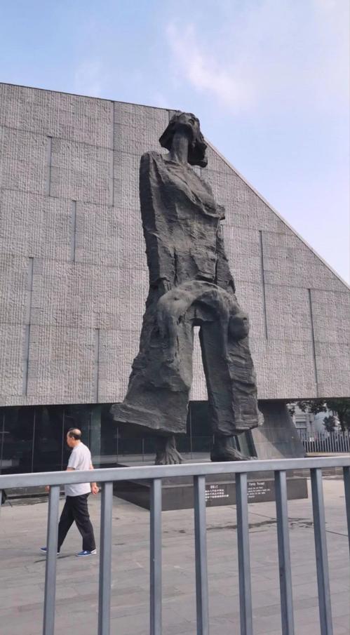 南京大屠杀是一场中华民族的灾难,是一段刻骨铭心的国耻。侵华日军南京大屠杀遇难同胞纪念馆的灰墙和巨大的雕塑显得萧杀肃穆,侵华日军南京大屠杀遇难同胞纪念馆前广场上的系列铜像无声地诉说着那段不堪回首的岁月,纪念碑上大大的“奠”字烘托出凝重的气氛。