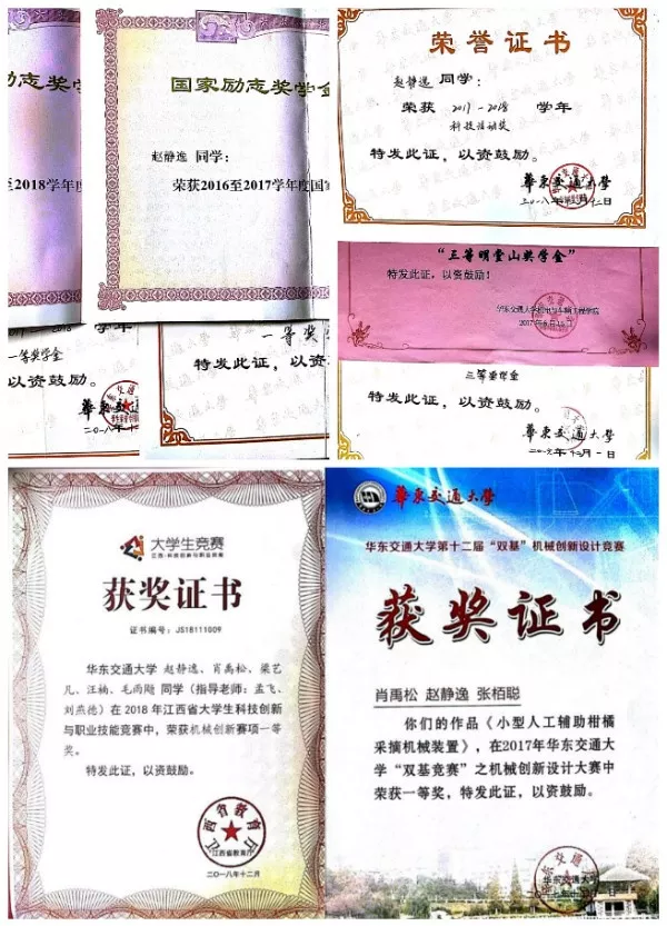 赵静逸,汉族,中共预备党员,yl23455永利集团,15级机械电子工程一班。顺利通过英语四六级,获得计算机二级证书,普通话证书。学习成绩连续三年位列专业第二,并多次获得校一等奖学金,校三好学生,国家励志奖学金等荣誉。科技创新方面也获得过机械创新设计大赛省赛、校赛一等奖,担任第一负责人。2017-2018学年“科技活动奖”,“双基”三维数字化创新设计大赛校赛三等奖, 获得实用新型专利一项等奖项。
