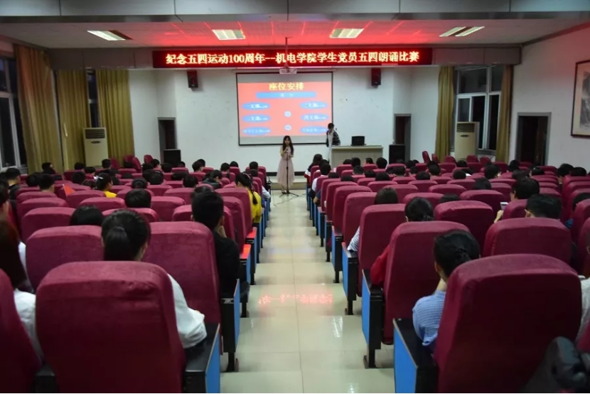 yl23455永利集团学生党员教育管理中心于2019年5月4日晚在机电学院学术报告厅举办“红五月·纪念五四运动100周年”朗诵比赛。