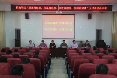 我院响应学校号召,10月11日于机电报告厅召开“思想再解放,改革再出发”大讨论动员大会。校纪委书记朱卫国,机电学院院长刘燕德,常务副院长周建民,副院长胡国良、肖乾以及全院教职工出席会议,院党委书记周尔民主持会议。
